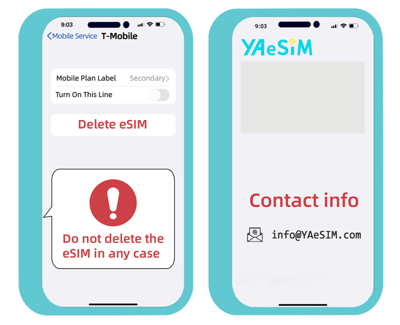 Any issues, please contact us. DO NOT delete the eSIM. Once deleted, we will be unable to track the issue or assist in resolving it.